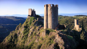 The Châteaux de Lastours are four, 11th-century Cathar castles, situated approximately one mile from the village of Lastours. The castles are on a rocky spur high above the village, isolated by the deep valleys of the Orbeil and Grésilhou rivers. Built at an altitude of 300m along a rock wall just 400m (1,300 ft) long and 50m (165 ft) wide, three of the castles are in a line, whereas the fourth is on a separate pinnacle close by. Though the four castles constitute a single fortification, they are not a single structure. The construction of each castle is different, reflecting the need to adapt to the natural layout of the rocky sites. The castles have been classified as Historic Monuments since 1905 and archaeological excavations are still in progress.