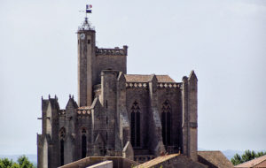Vias is a small town close to the Canal du Midi. Like many other towns in the region, it was a “bastide” or fortified town during the Middle Ages. Its ramparts are still visible today. On the edge of the old fortifications is a 14th century church, built in the Gothic style. The local volcanic stone gives it a very dark appearance.