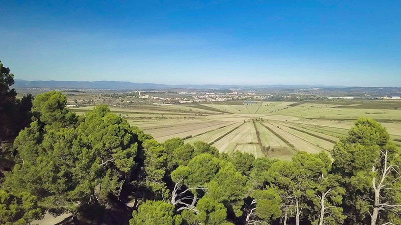 Medieval monks drained the Etang de Montady, an ancient lagoon, by cutting radial ditches. The ditches all flow to the center, from where the water runs through an underground culvert under the same Malpas hill as the canal tunnel. The radial design creates a remarkable pattern of triangular field plots, unique to the region.