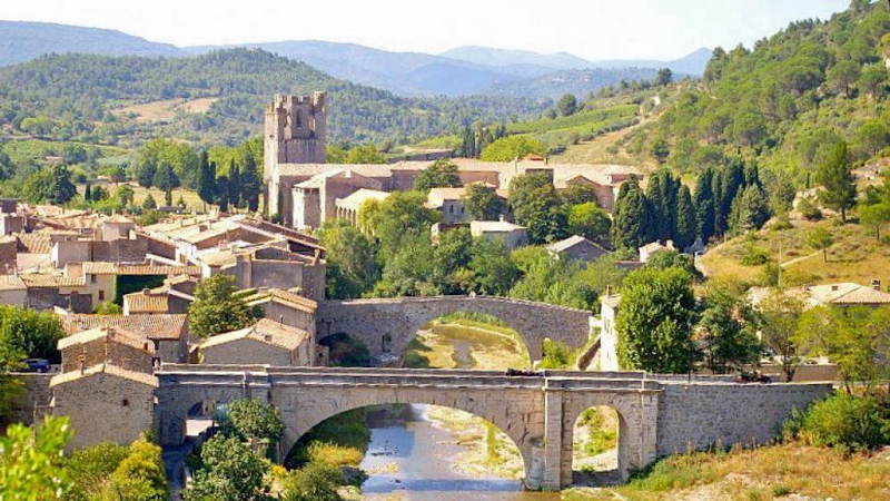 Minerve, the ancient capital of Minervois, sits atop a rocky outcrop at the junction of the Cesse and Brian Rivers, and is many consider it to be the quintessential medieval village. First founded in the 8th century, it is surrounded by deep limestone gorges and offers magnificent views of the countryside. Along the riverbed are caves and bridges carved out of limestone by the power of the water. An octagonal tower, “La Candela,” is all that remains of the medieval castle. It is famously remembered as the site of the first mass burning of Cathar heretics during the Albigensian Crusade of the 13th century. A small museum in the center of the village recalls this gruesome chapter of its history. The 10th century Church of St-Stephen contains a 5th-century altar, thought to be one of the earliest Christian altars in Europe. It is inscribed with the initials and names of the inhabitants of the town who swore to God they would pay their taxes while under Visigoth rule.
